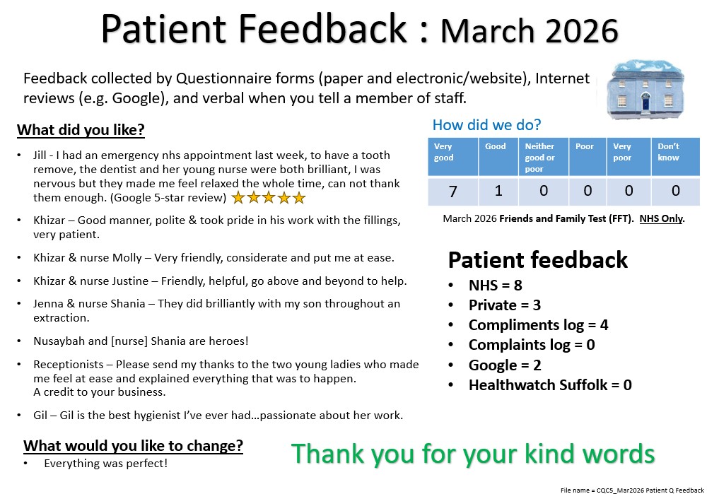 All NHS feedback is published to the NHS as per regulations. We will not reveal personal names unless you have consented,