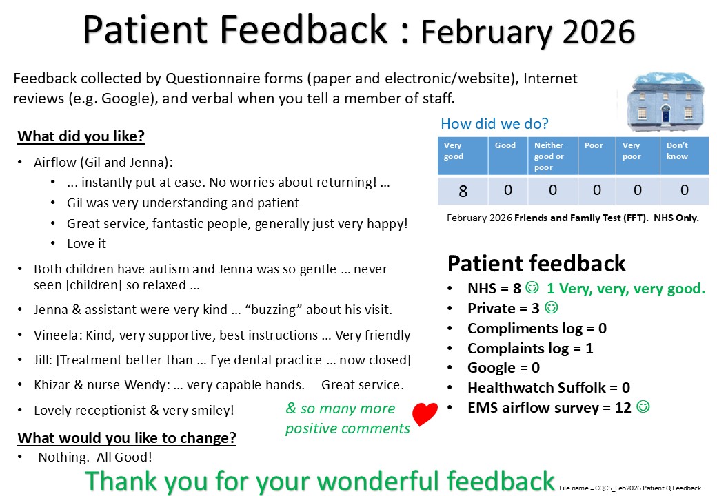 Alternatively, speak to us on your next visit to the practice and we can give you a paper feedback questionnaire immediately after your appointment.